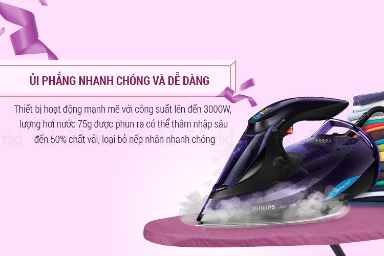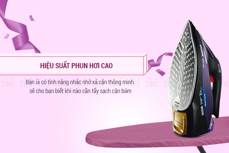 Bàn Ủi Hơi Nước chống cháy Philips GC5039 (3000W) mang màu tím trẻ trung, với những đường nét, hoa văn tinh tế, thấp thoáng nét đẹp hiện đại, tô điểm cho không gian căn hộ của bạn.