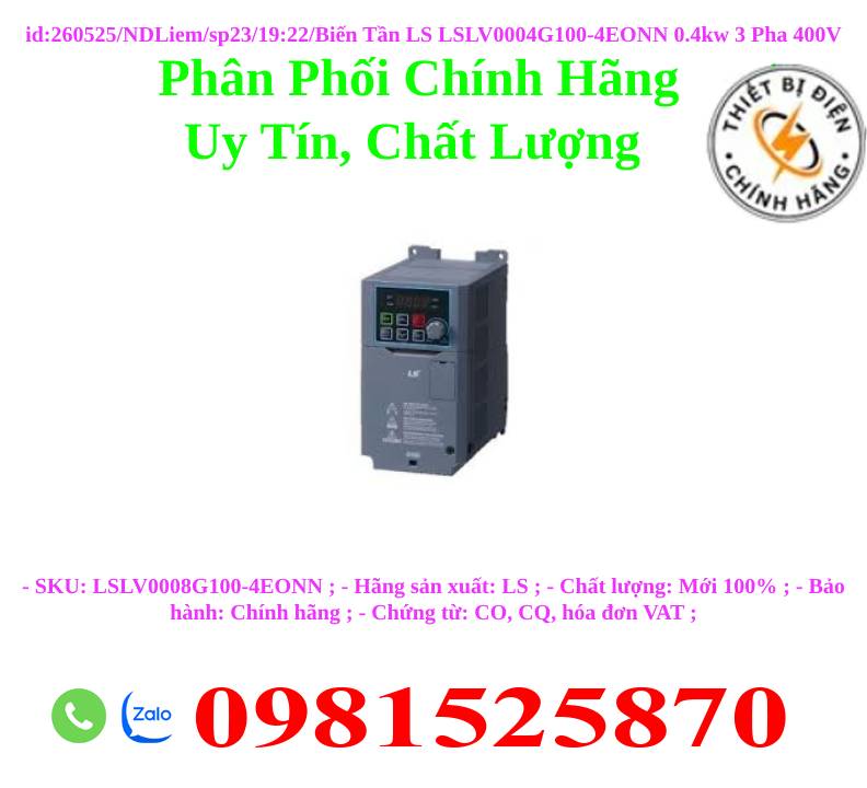 | Tên sản phẩm | Biến tần LSLV0004G100-4EONN LS |