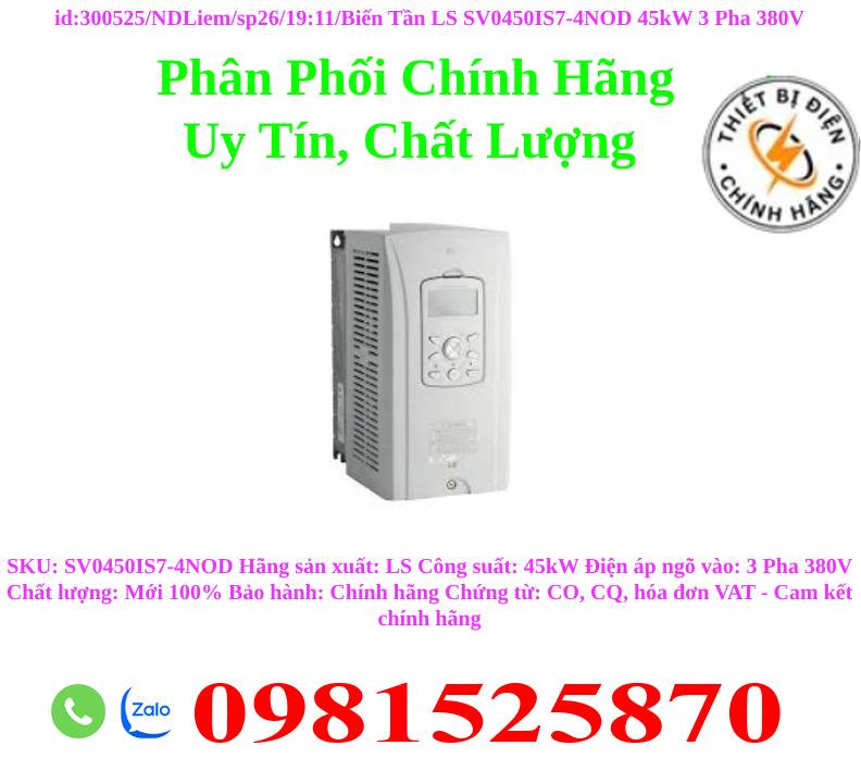 SKU: SV0450IS7-4NOD Hãng sản xuất: LS Công suất: 45kW Điện áp ngõ vào: 3 Pha 380V Chất lượng: Mới 100% Bảo hành: Chính hãng Chứng từ: CO, CQ, hóa đơn VAT - Cam kết chính hãng