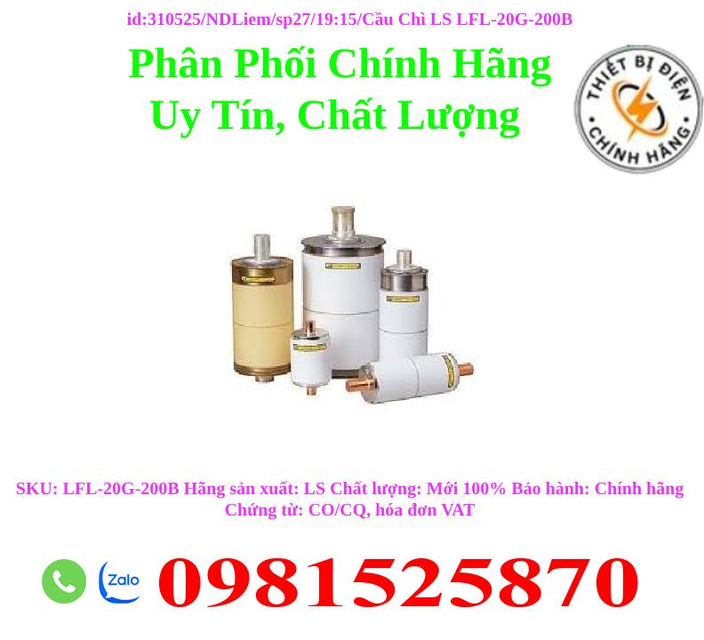 - Tên sản phẩm: Cầu chì trung thế LS LFL-20G-200B- Thương hiệu: LS- Dòng điện định mức In: 200A- Điện áp xung định mức Uimp: 24kV- Cầu chì trung thế dùng để bảo vệ máy biến áp, máy biến dòng, động cơ…