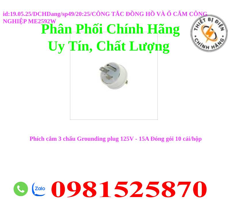 Phích cắm 3 chấu Grounding plug 125V - 15A Đóng gói 10 cái/hộp