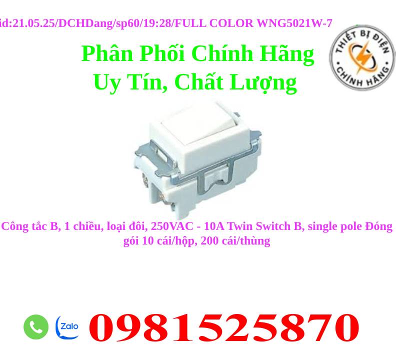 Công tắc B, 1 chiều, loại đôi, 250VAC - 10A Twin Switch B, single pole Đóng gói 10 cái/hộp, 200 cái/thùng
