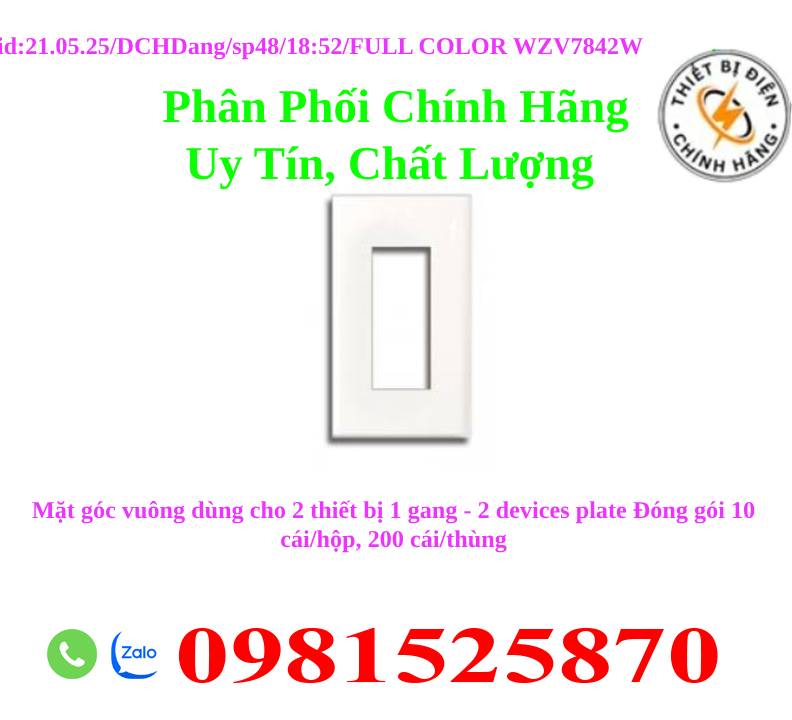 Mặt góc vuông dùng cho 2 thiết bị 1 gang - 2 devices plate Đóng gói 10 cái/hộp, 200 cái/thùng