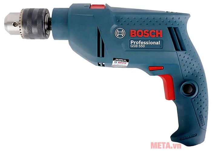 Thân máy khoan Bosch được làm bằng chất liệu nhựa cao cấp, chống va đập. Đầu mũi khoan bằng kim loại chắc chắn.